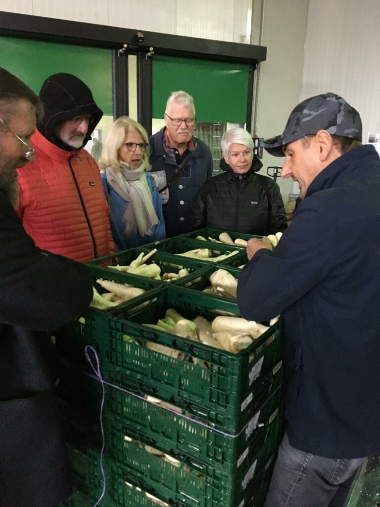 Eine kleine feine Gruppe wird von Herrn Hopf durch den Betrieb geführt. Die Genossenschaft wurde 1998 durch die Fusion der zwei Einzelunternehmen Gartenbauzentrale Gundelfingen und dem Großmarkt Kitzingen eG gegründet. Der Zusammenschluss von zwei sehr unterschiedlich arbeitenden Betrieben im Gemüseanbau versprach eine erfolgreiche Zukunft.