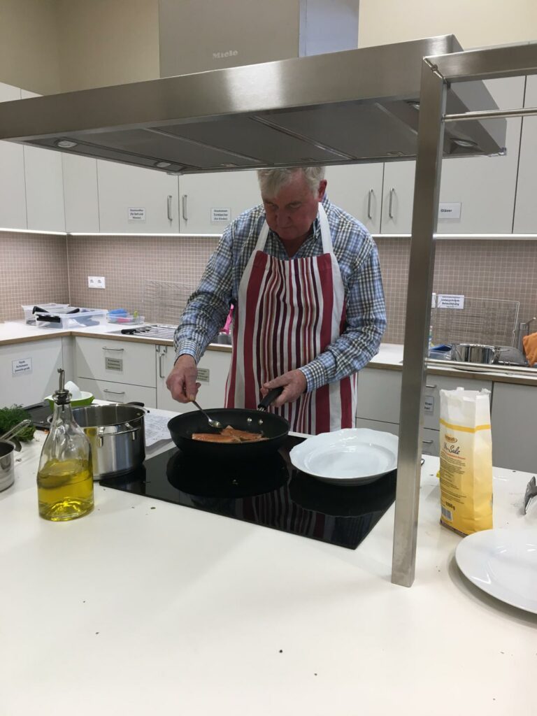 Die Teilnehmer haben sich in 2-er Gruppen an die Arbeit gemacht, unterstützt von dem sehr übersichtlich und mit viel Liebe von Frau Philomena Sittner zusammengestelltem Kochbuch.